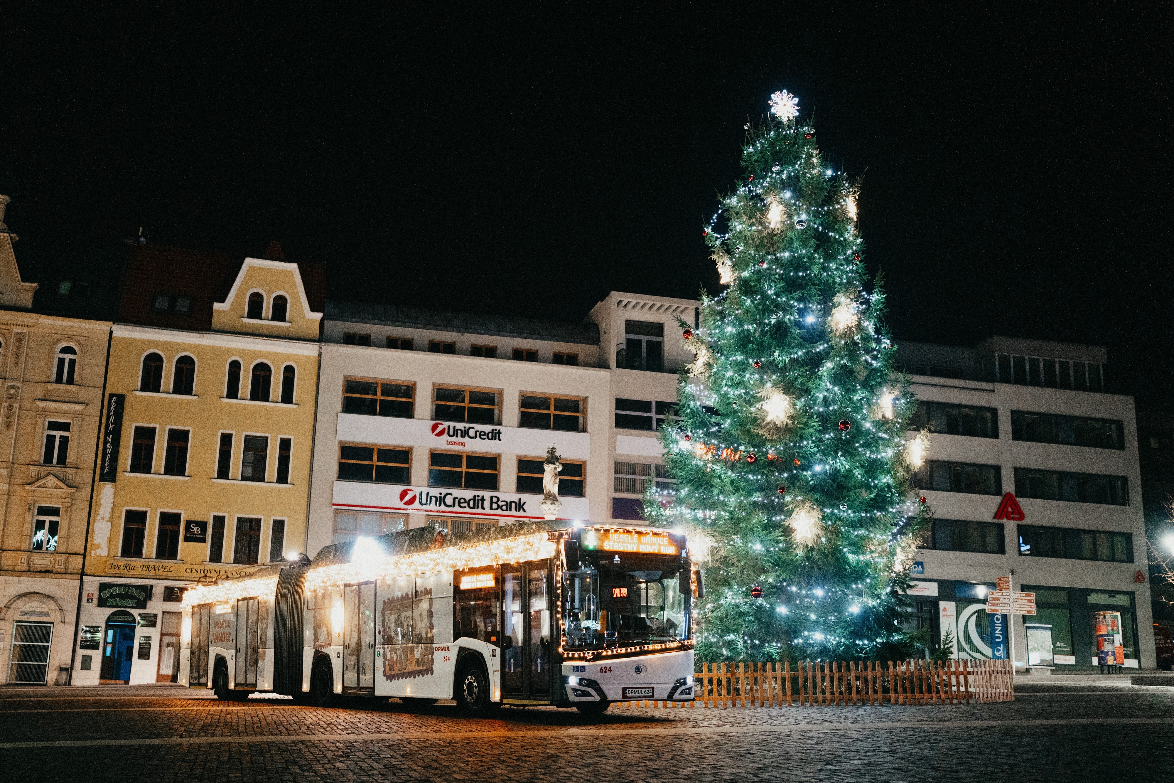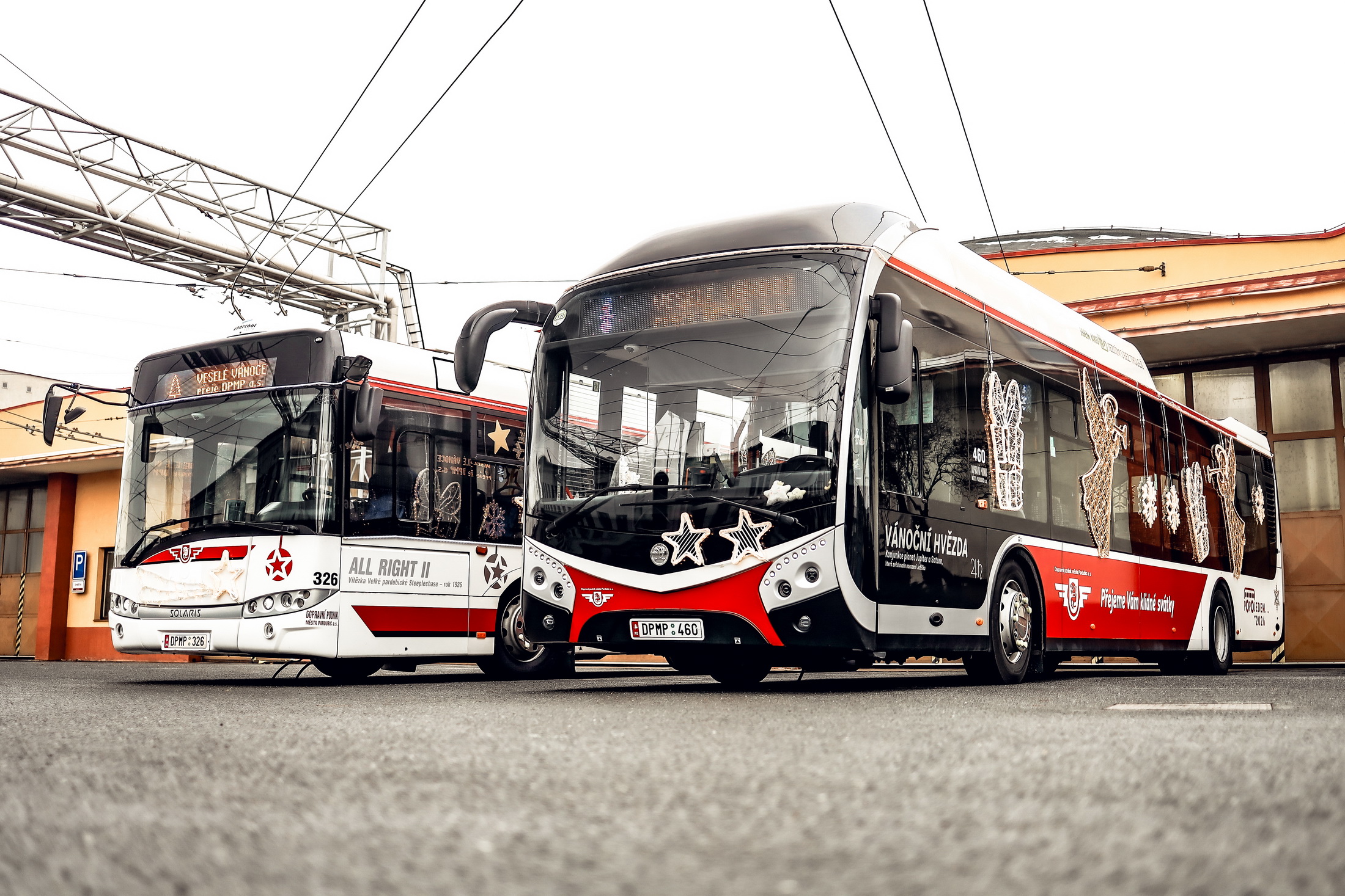 Vánočně vyzdobené trolejbusy vyjely i v letošním roce do adventních ulic řady měst. Který z nich je nejhezčí?