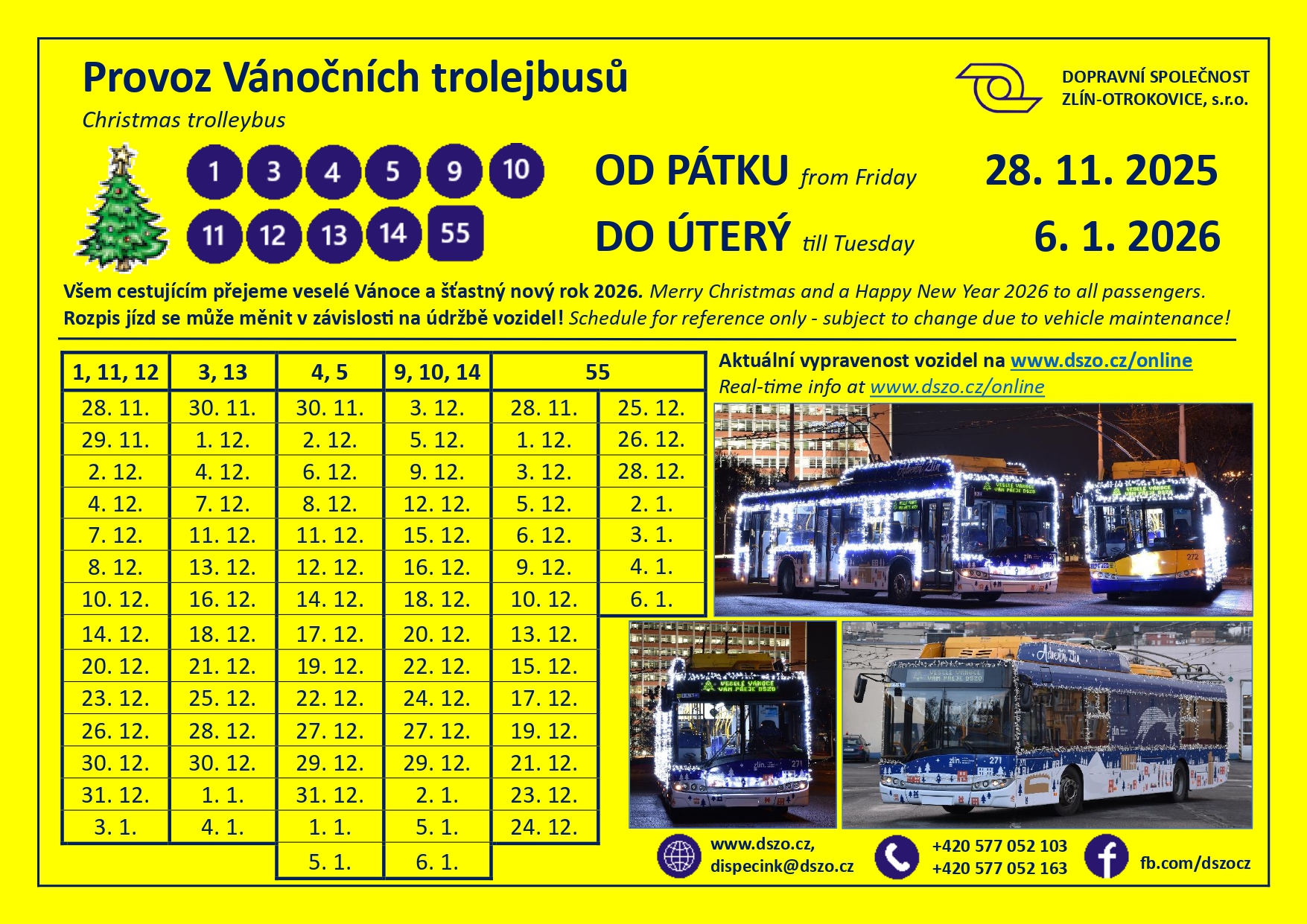 Společnost pro veřejnou dopravu i v letošním roce ve spolupráci s dopravním magazínem MHD86.cz a s podporou serveru Plzeňské trolejbusy vyhlašuje už šestý ročník ankety o nejhezčí Vánoční trolejbus. Od 14. prosince 2025 do 5. ledna 2026 je možné hlasovat pro vaše favority.